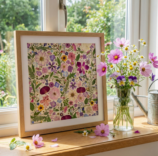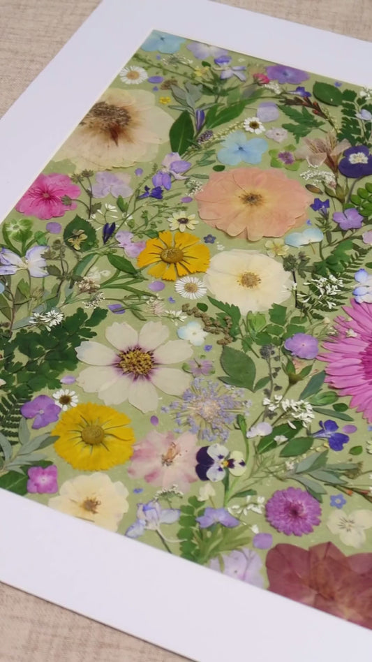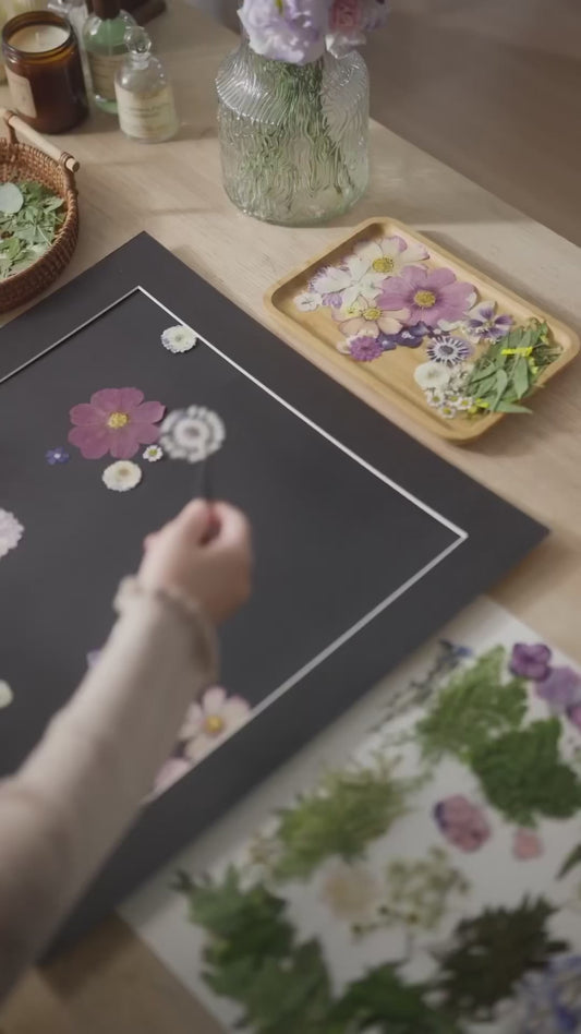 Sobald Ihre Bestellung bestätigt ist, beginnen wir mit dem Pressen und Vorbereiten der Blumen und Pflanzenblätter speziell für Ihr Kunstwerk.
