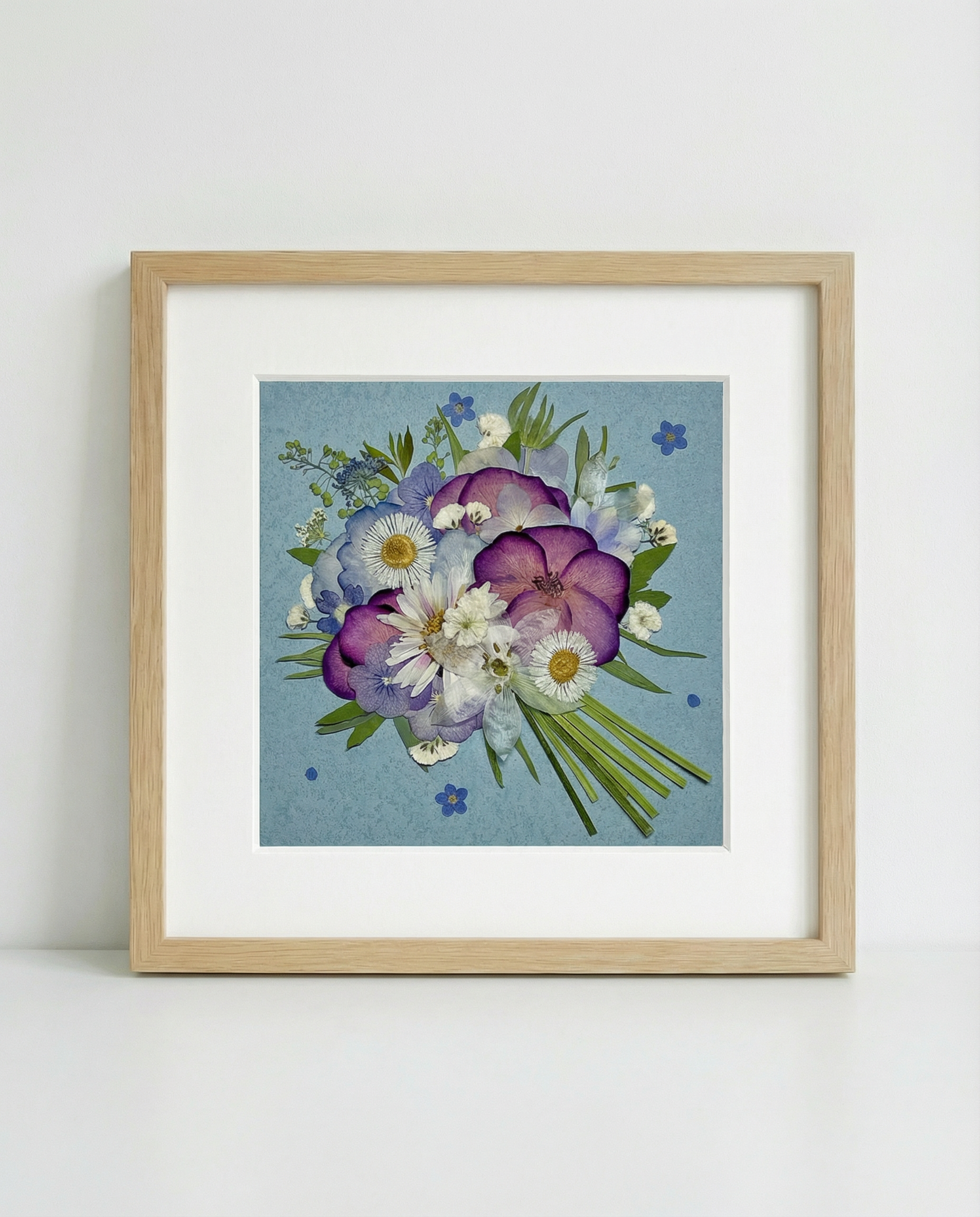 ▪ PRODUKTDETAILS: Gerahmtes Bild mit gepressten Blumen (25 x 25 cm), ideal als Tischdekoration. Unsere Rahmen werden von unseren Floristen mit viel Liebe zum Detail aus den schönsten saisonalen Blüten gefertigt. Wir verwenden ausschließlich Blumen und Pflanzen.