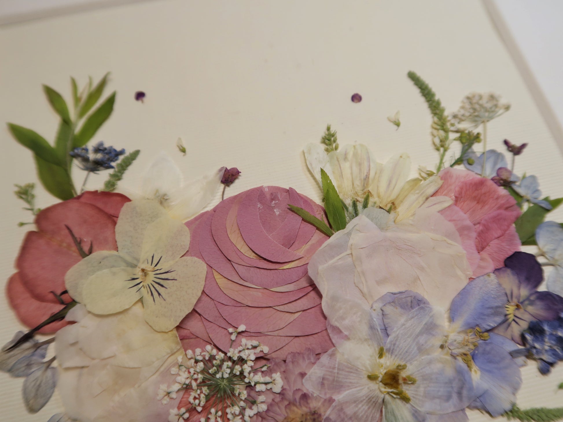 ▪ PRODUKTDETAILS: Gerahmtes Bild mit gepressten Blumen (25 x 25 cm), ideal als Tischdekoration. Unsere Rahmen werden von unseren Floristen mit viel Liebe zum Detail aus den schönsten saisonalen Blüten gefertigt. Wir verwenden ausschließlich Blumen und Pflanzen.