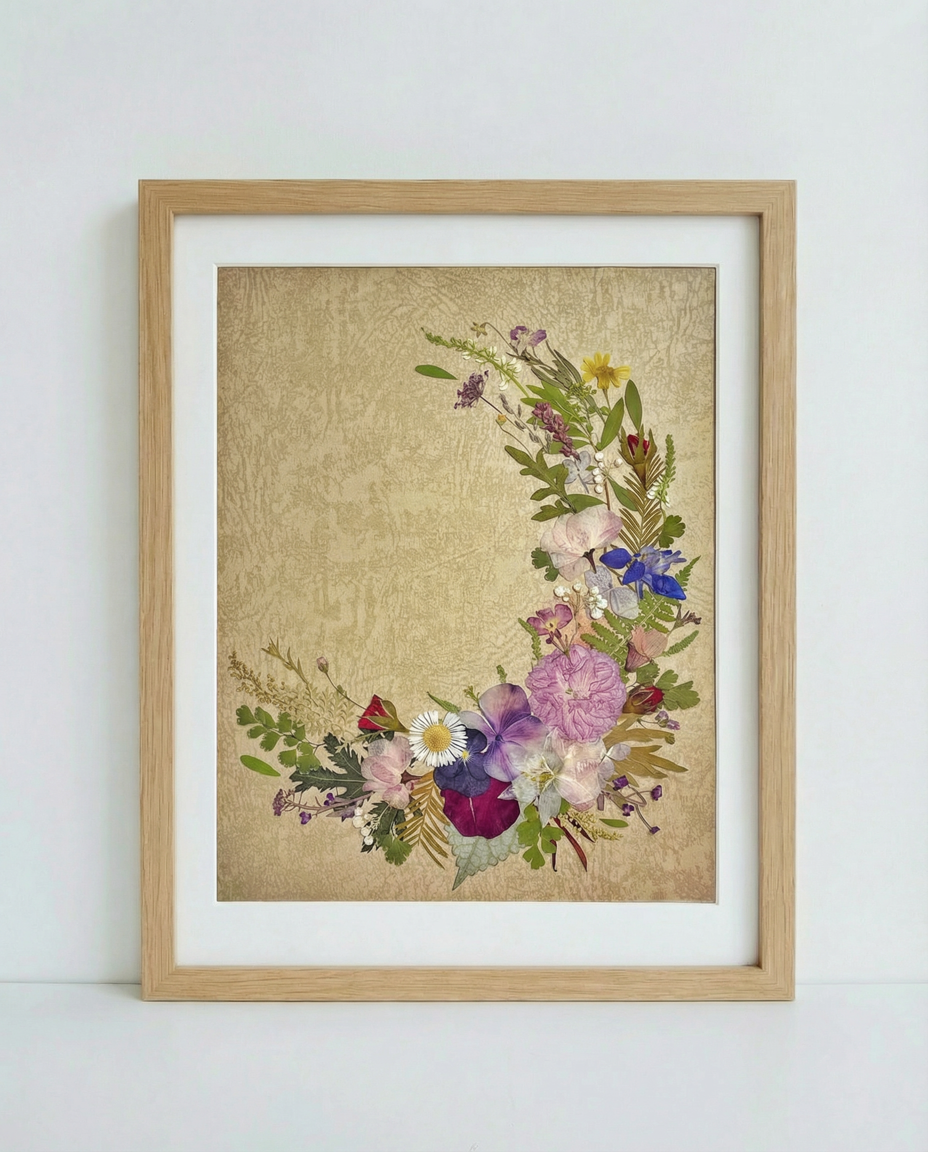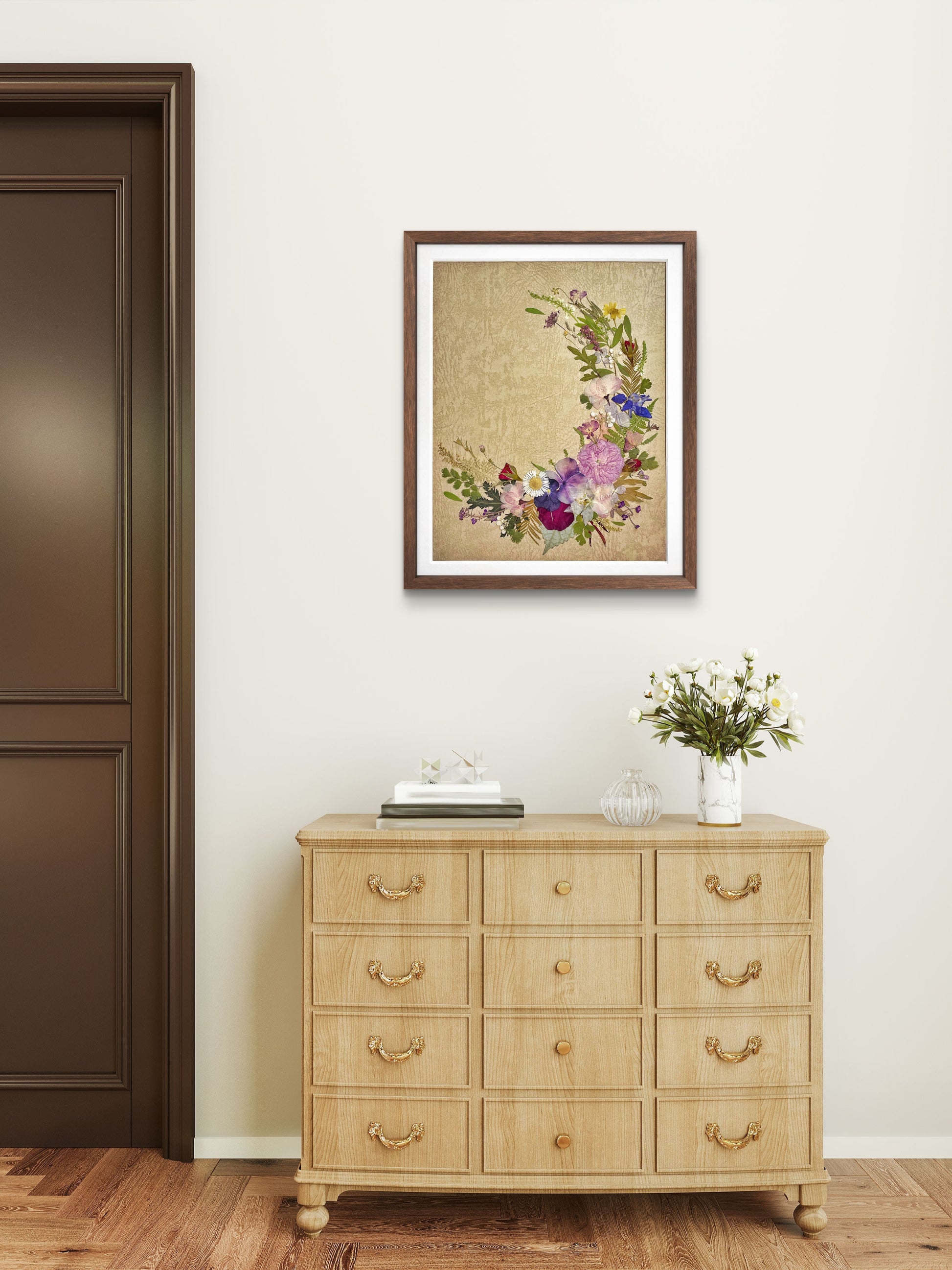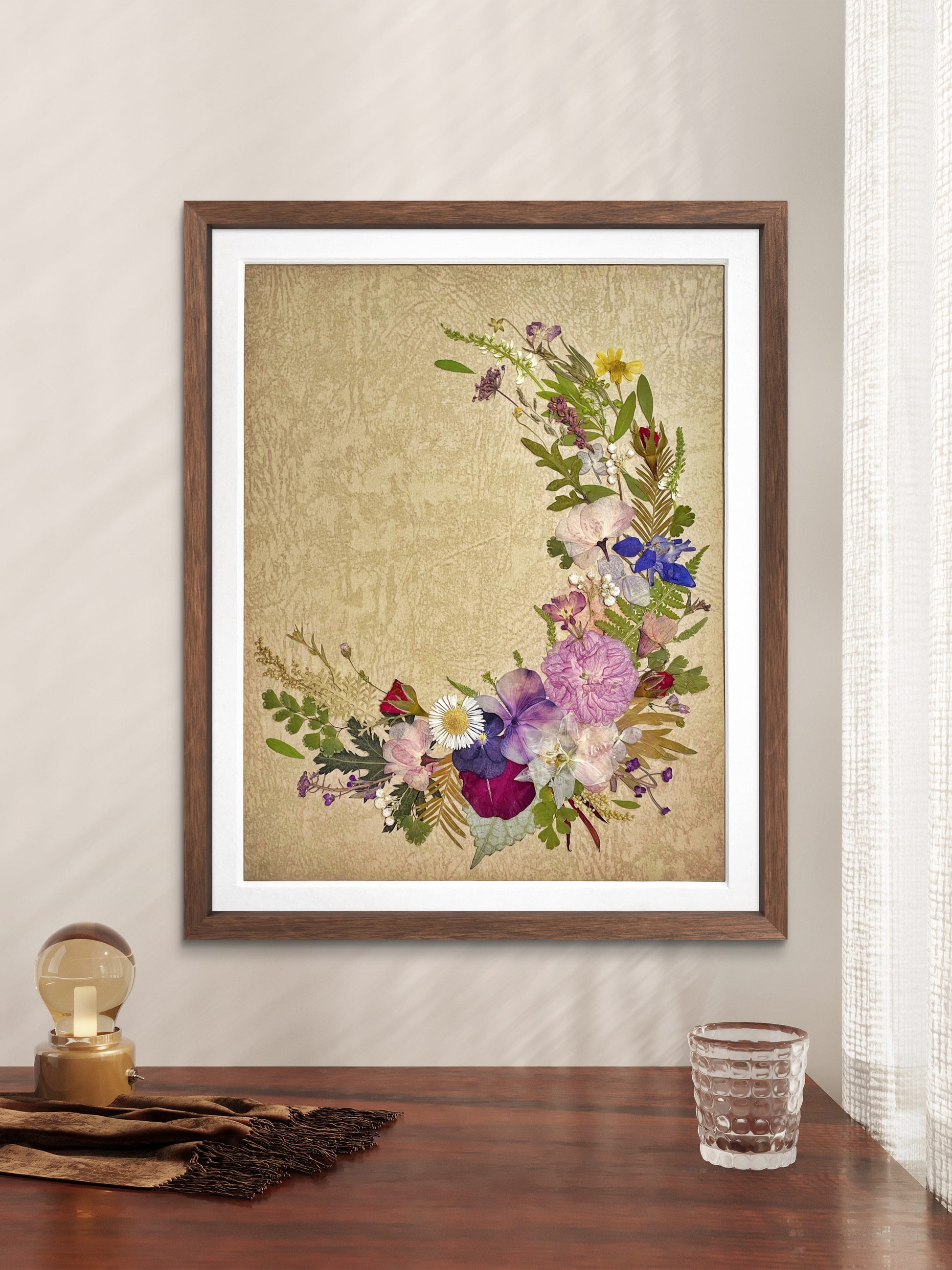 Das Kunstwerk ist mit einer transparenten Acrylplatte abgedeckt und mit einer Aluminiumrückwand versiegelt, um seine Langlebigkeit zu erhöhen und seine botanische Schönheit zu bewahren.
