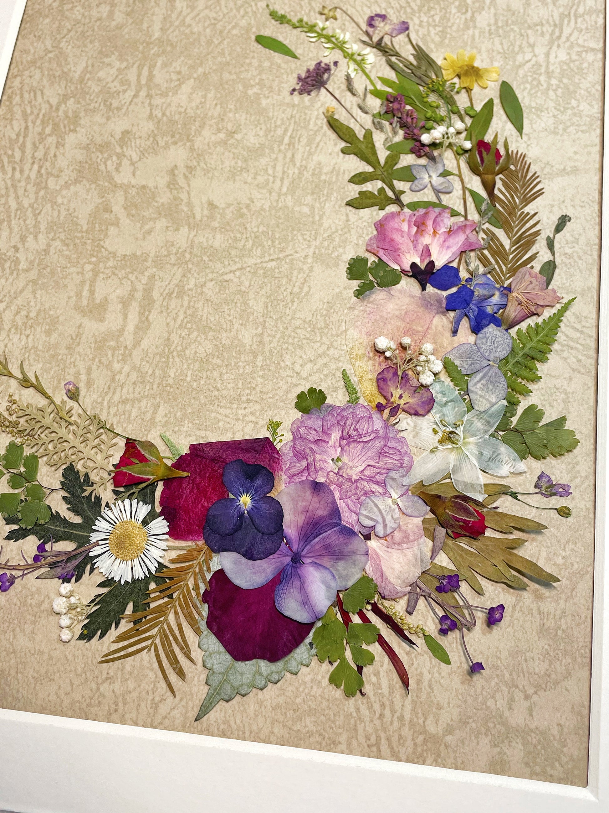 ▪ Produktdetails: Dieser mittelgroße Bilderrahmen mit gepressten Blumen präsentiert das Arrangement perfekt vor dem Hintergrundpapier. Unsere Rahmen werden von unseren Floristen mit viel Liebe zum Detail aus den schönsten saisonalen Blüten gefertigt. Wir verwenden ausschließlich Blumen und Pflanzen.