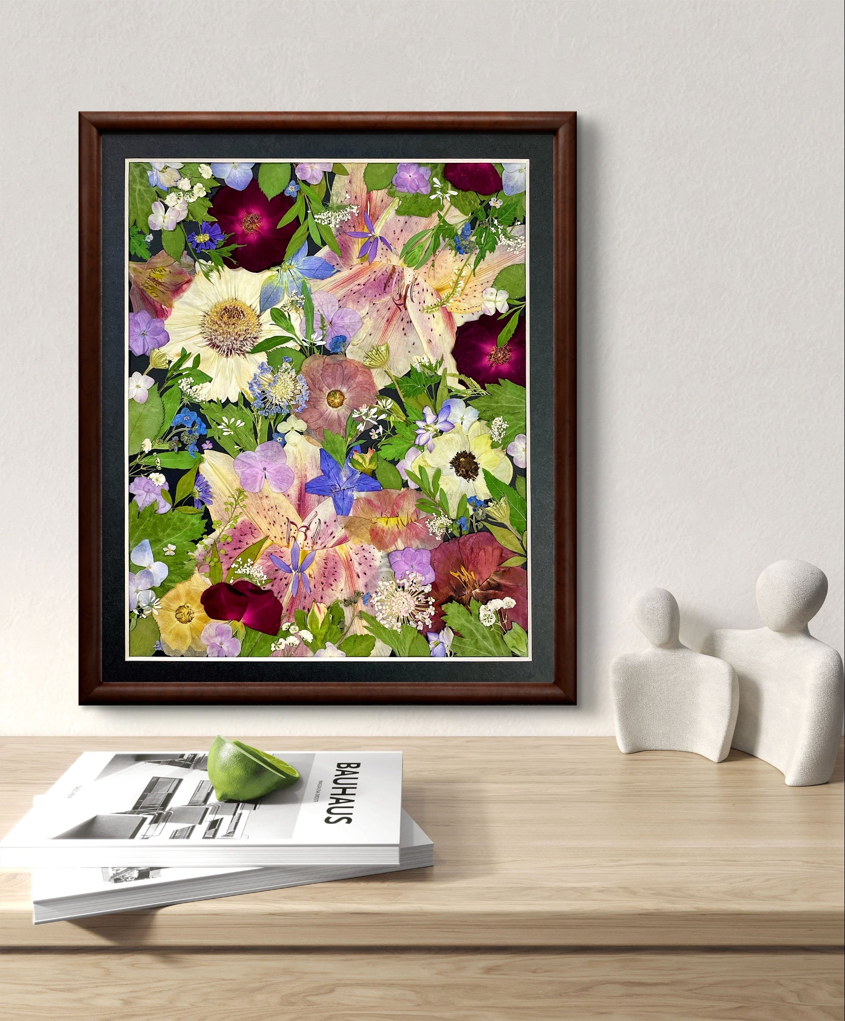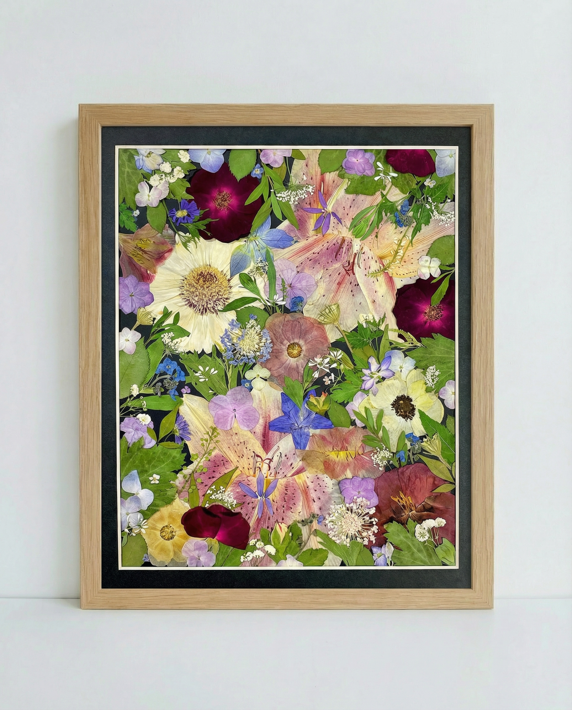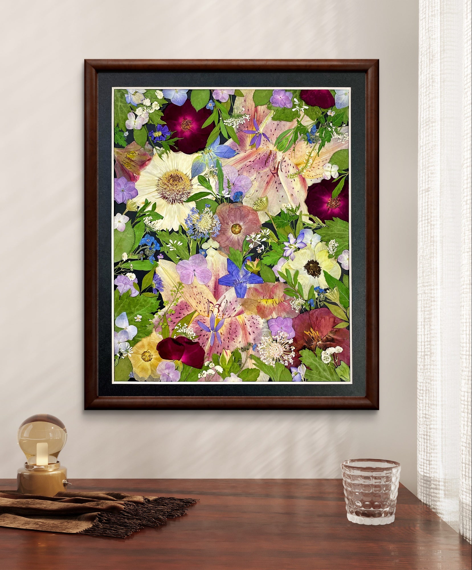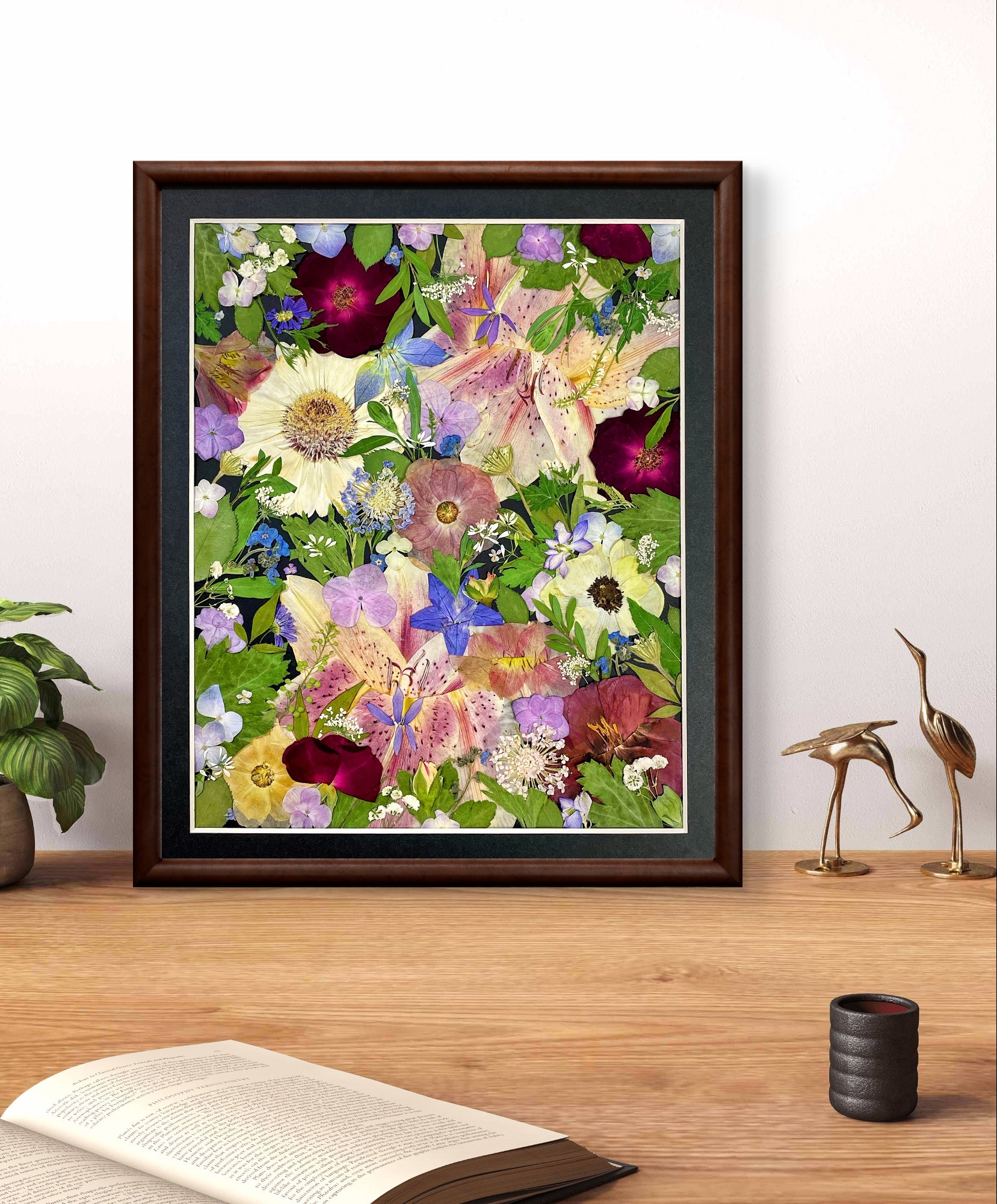 ▪ Produktdetails: Dieser kleine, gerahmte Blumenstrauß präsentiert das Arrangement perfekt vor schwarzem Hintergrundpapier und ist mit einer transparenten Acrylglasplatte abgedeckt. Unsere Rahmen werden aus edlem Hartholz gefertigt, und unsere Floristen wählen sorgfältig die schönsten saisonalen Blüten aus. Wir verwenden ausschließlich Blumen und Pflanzen.