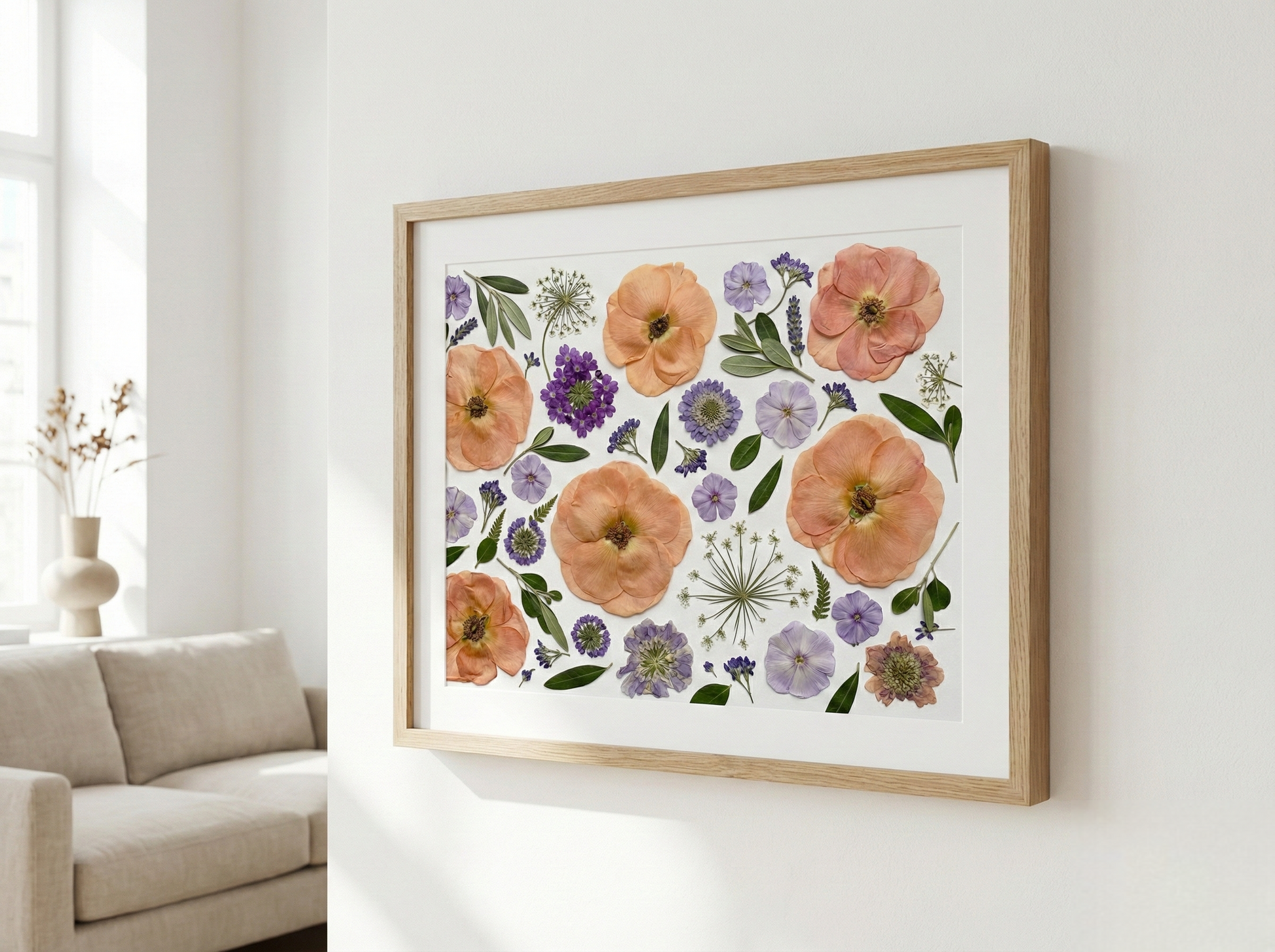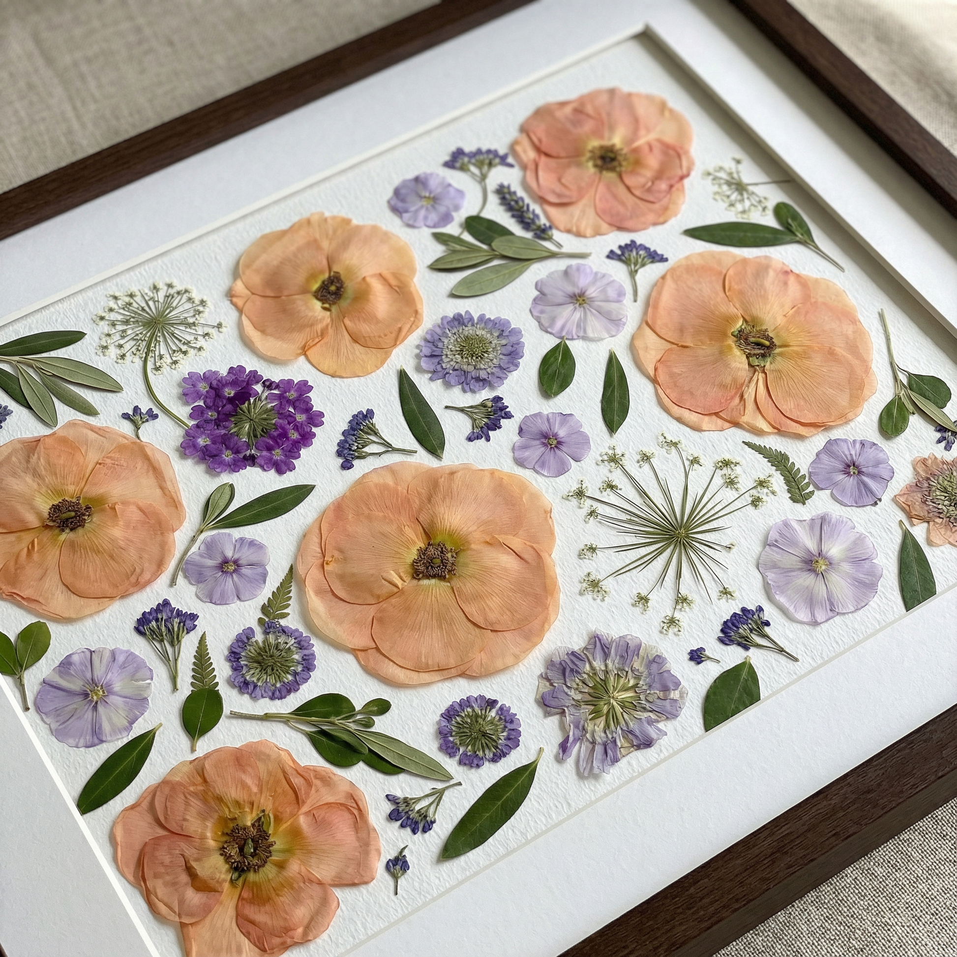 Unsere Floristin arrangiert und klebt sorgfältig getrocknete Blütenblätter auf Hintergrundpapier und kreiert so ein einzigartiges Design. Jedes Blütenblatt stammt von den schönsten saisonalen Blüten, die von unseren erfahrenen Floristen sorgfältig ausgewählt und gepresst werden.