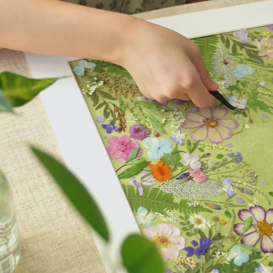 ▪ Produktdetails: Dies ist ein großformatiges, gerahmtes Kunstwerk aus gepressten Blütenblättern. Unsere Floristin arrangiert und klebt sorgfältig getrocknete Blütenblätter auf Hintergrundpapier und schafft so ein einzigartiges Design. Jedes Blütenblatt stammt von den schönsten saisonalen Blüten, die sorgfältig ausgewählt wurden. Von unseren erfahrenen Floristen gepresst.