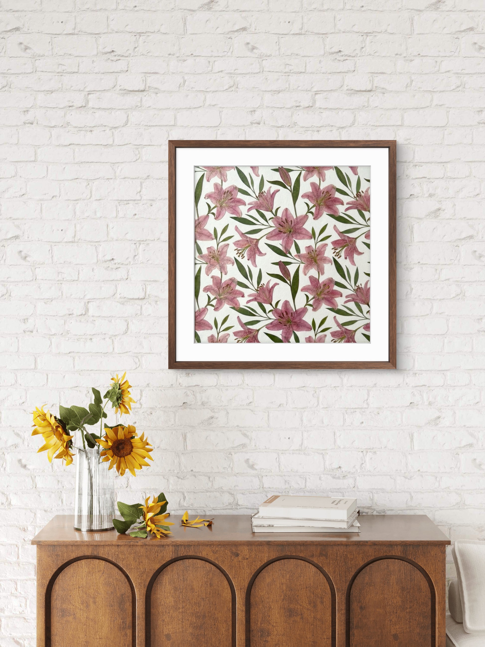 Unsere Floristin arrangiert und klebt sorgfältig getrocknete Blütenblätter auf Hintergrundpapier und kreiert so ein einzigartiges Design. Jedes Blütenblatt stammt von den schönsten saisonalen Blüten, die von unseren erfahrenen Floristen sorgfältig ausgewählt und gepresst werden.