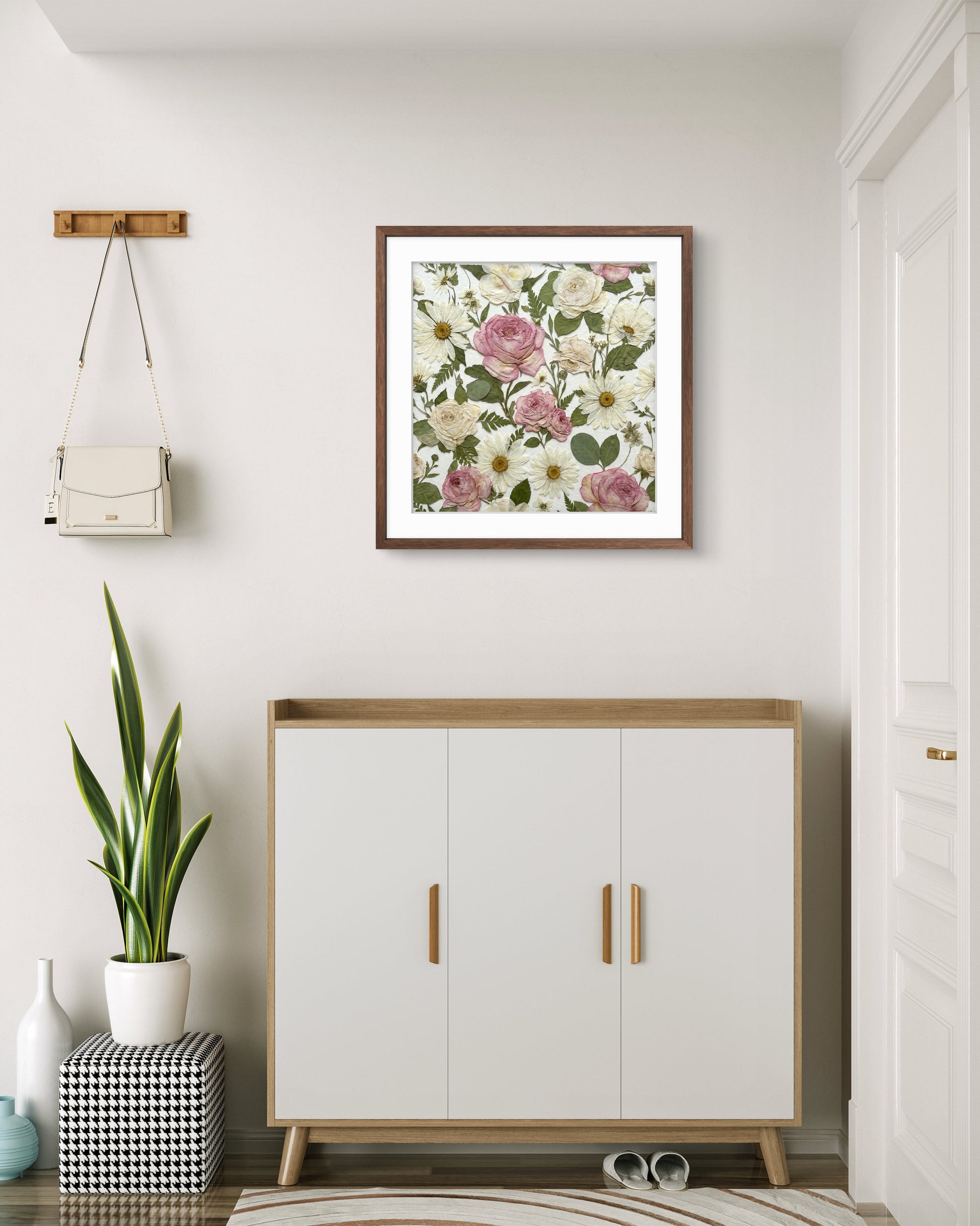 Unsere Floristin arrangiert und klebt sorgfältig getrocknete Blütenblätter auf Hintergrundpapier und kreiert so ein einzigartiges Design. Jedes Blütenblatt stammt von den schönsten saisonalen Blüten, die von unseren erfahrenen Floristen sorgfältig ausgewählt und gepresst werden.