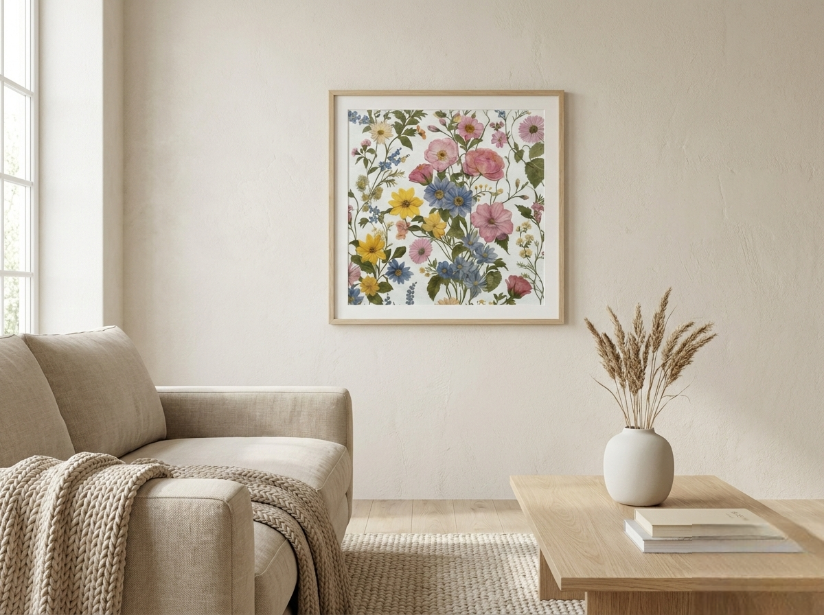 Das Kunstwerk ist mit einer transparenten Acrylplatte abgedeckt und mit einer Aluminiumrückwand versiegelt, um seine Langlebigkeit zu erhöhen und seine botanische Schönheit zu bewahren.