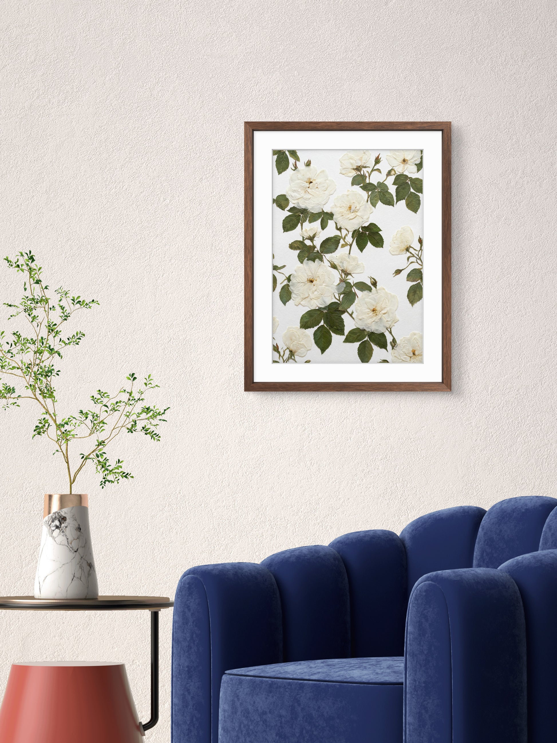 Das Kunstwerk ist mit einer transparenten Acrylplatte abgedeckt und mit einer Aluminiumrückwand versiegelt, um seine Langlebigkeit zu erhöhen und seine botanische Schönheit zu bewahren.